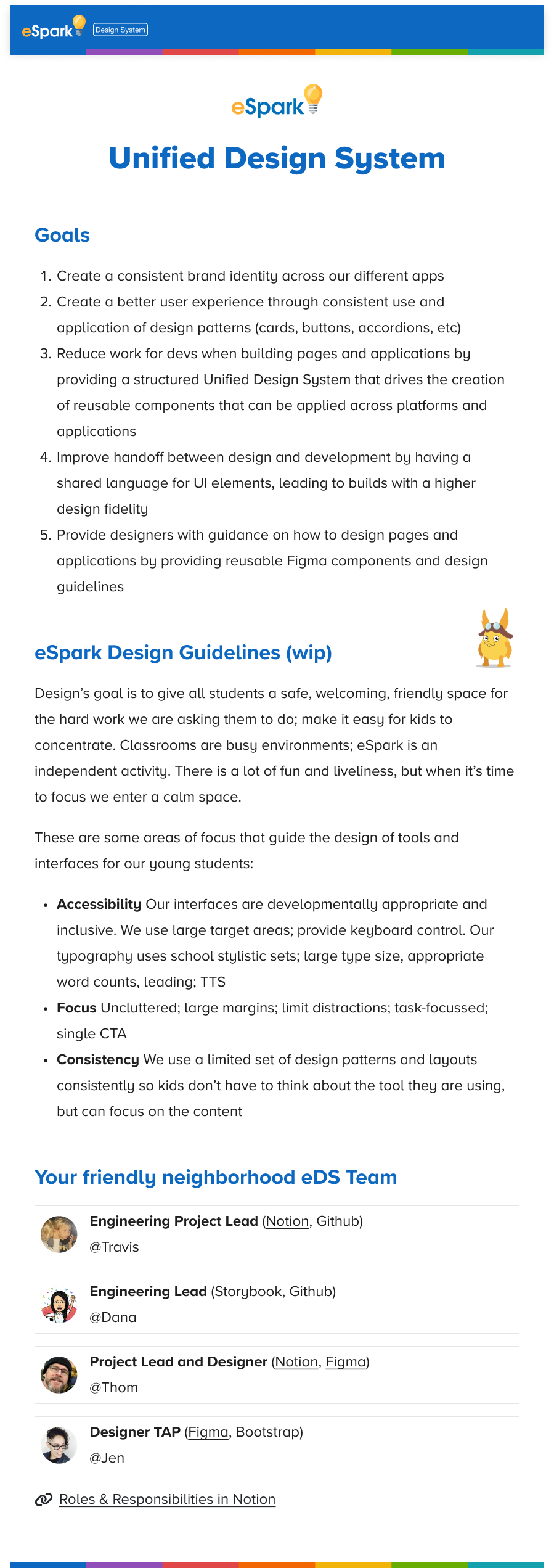 To solve this, I founded and led the creation of eSpark’s unified Design System and Component Library. My goal was simple: create a shared visual language and a scalable set of components that increased team velocity, improved product coherence, and gave students and teachers a more consistent, accessible experience across every eSpark product.